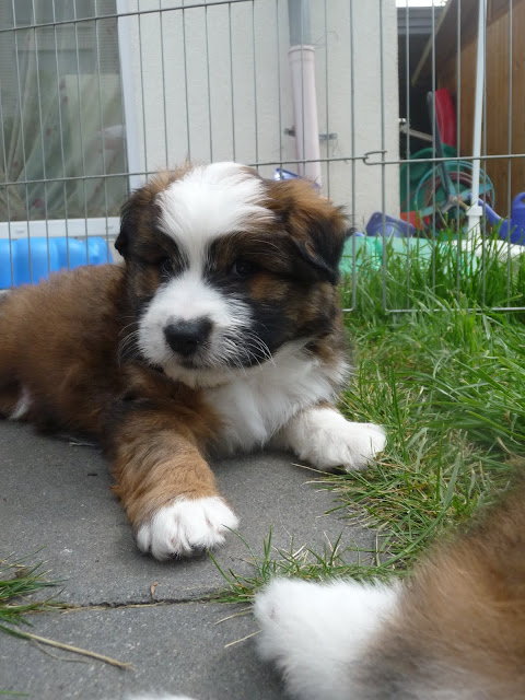 Dobby, geboren um 11.19 Uhr,Geburtsgewicht 243 gr., unregelmäßige Mantelscheckung rot